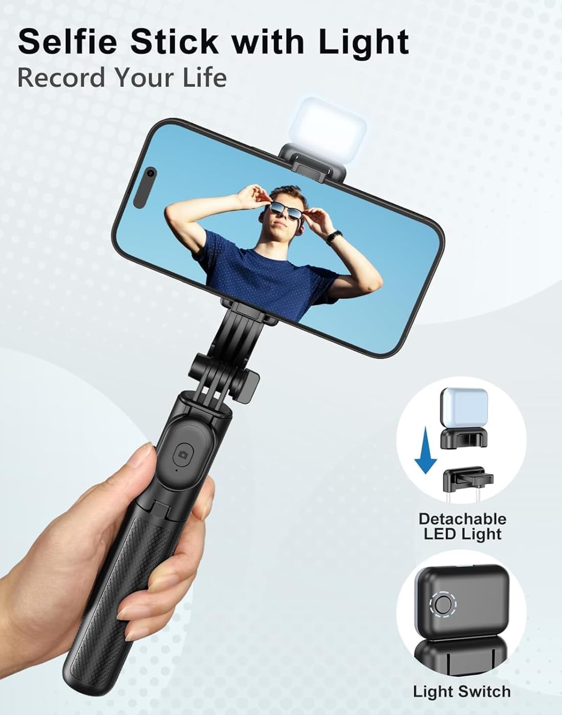 3-in-1 Selfie Stick Tripod with Rechargeable LED Light & Bluetooth Remote