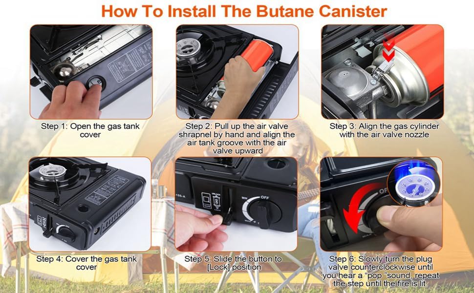 - Effortless Ignition & User-Friendly Operation – Featuring a built-in automatic piezo ignition system, this portable butane & LPG stove eliminates the need for matches or lighters. Simply attach your preferred fuel source, turn the knob, and ignite instantly. Its one-step ignition and adjustable flame control make it beginner-friendly, perfect for campers, survivalists, and even home emergency preparedness.